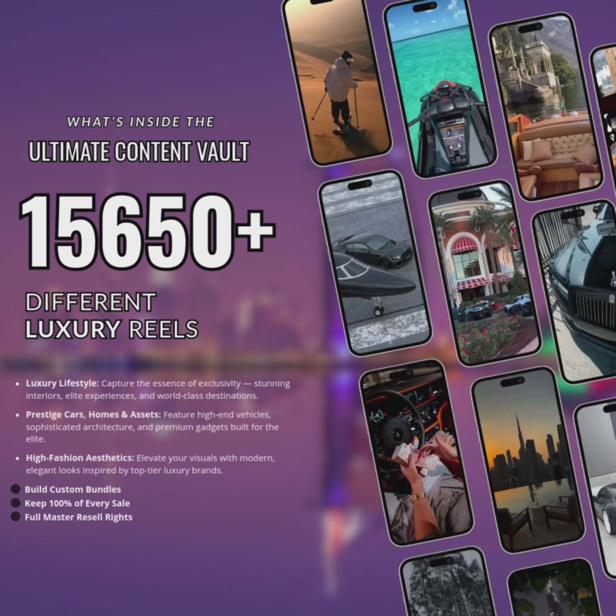 15,000+ luxury lifestyle clips crafted to elevate your brand presence and storytelling. Expect cinematic scenes, elegant environments, supercars, yachts, luxury fashion, premium interiors, and sophisticated cityscapes — all in UHD quality. Each clip is built to capture attention instantly through refined motion, aesthetic lighting, and powerful visual composition. Perfect for creators, agencies, and brands who want to project success, exclusivity, and aspiration.